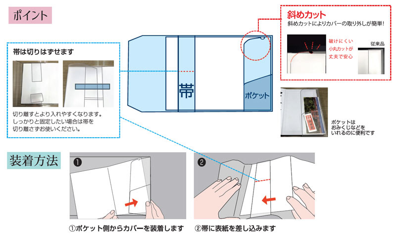 〇斜めカットで出し入れが簡単・スムーズなカバー。