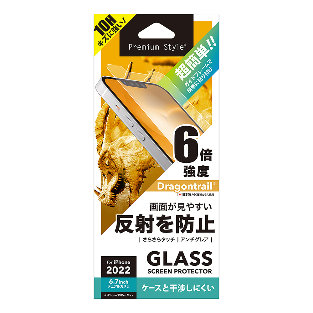 iPhone 14 Plus ガイドフレーム付 液晶保護ガラス Premium Style アンチグレア PG-22PGL02AG