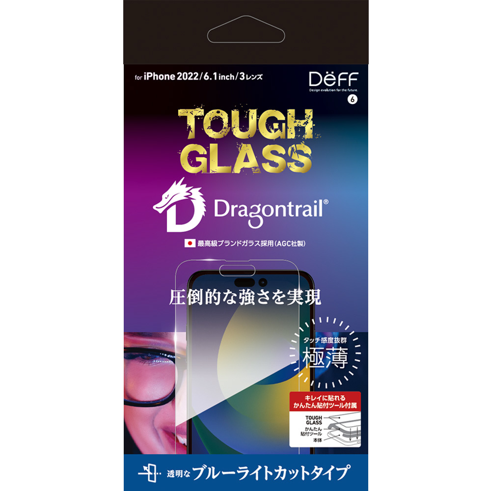 iPhone2022 6.1inch 3眼用ガラスフィルム ブルーライトカット 「TOUGH GLASS」
