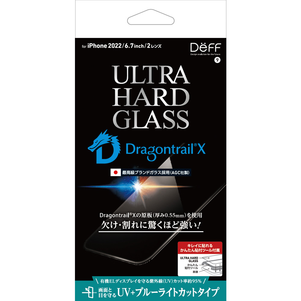 iPhone2022 6.7inch 2眼用ガラスフィルム ブルーライトカット+UVカット 「ULTRA HARD GLASS」