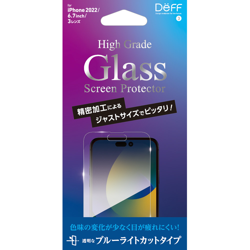 iPhone2022 6.7inch 3眼用ガラスフィルム ブルーライトカット 「High Grade Glass Screen Protector」