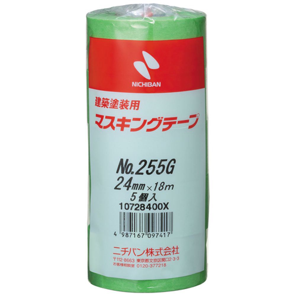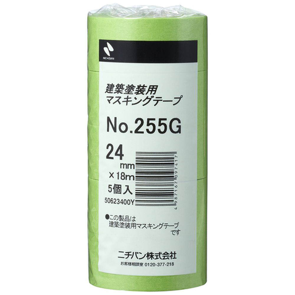建築用マスキングテープ 5巻入(幅24mm/長さ18m) 黄緑 255GH-24
