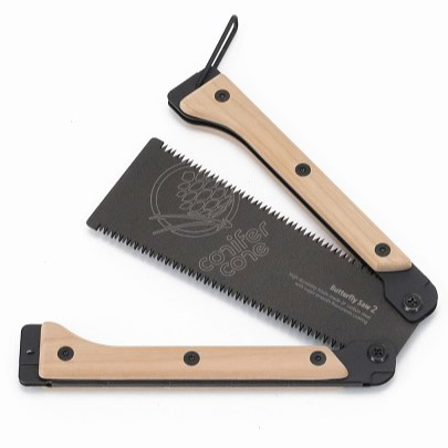世界最小クラスの折りたたみ両刃のこぎり「バタフライソー2」。「本物の切れ味」と「デザイン」と「携帯性」を追求した折り畳み両刃のこぎりです。