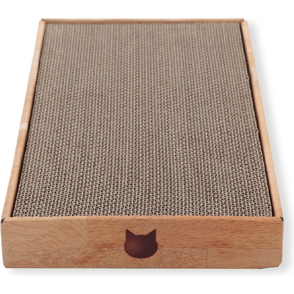 バリバリパッドはダンボール製の専用ケースがついています。猫がつめとぎをした後にでるとぎカスも、ケースが受け止めてくれます。とぎカスが飛び散ることがないので、お部屋に置いても、ケージ内で使っても、お掃除らくらくです。