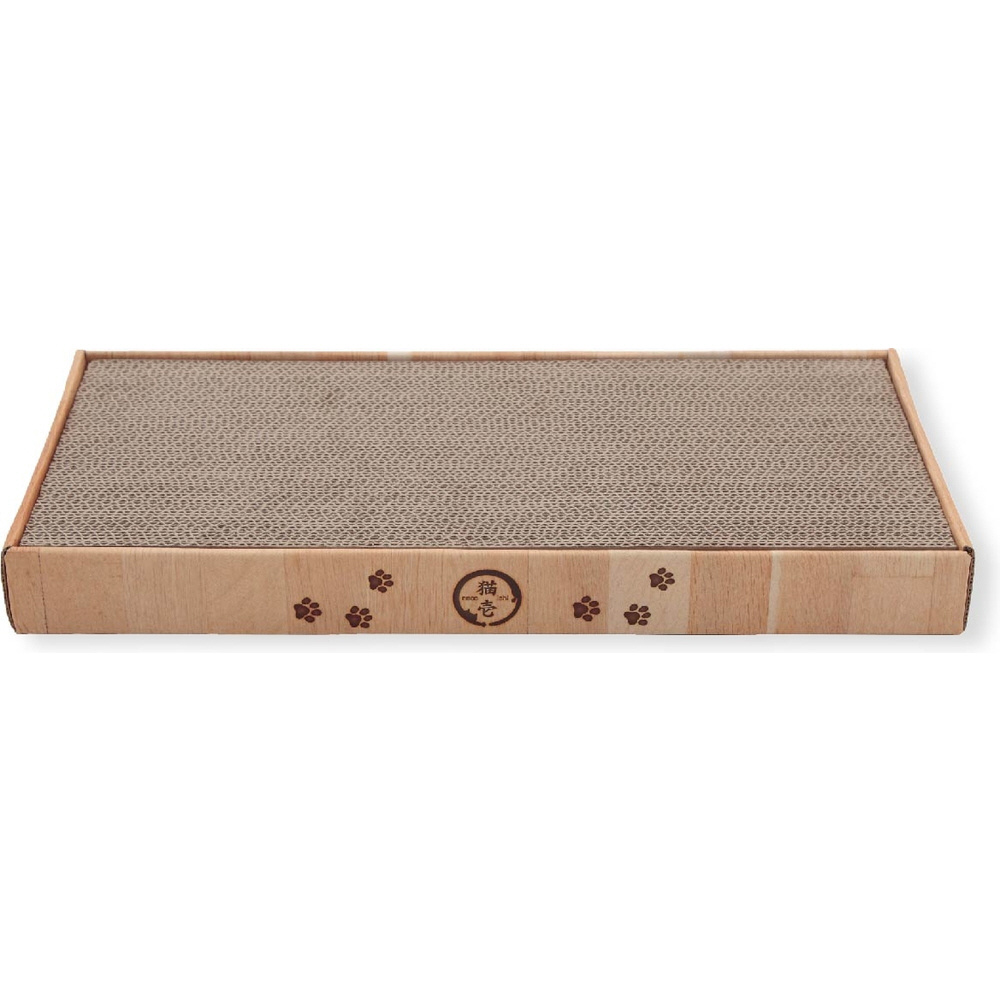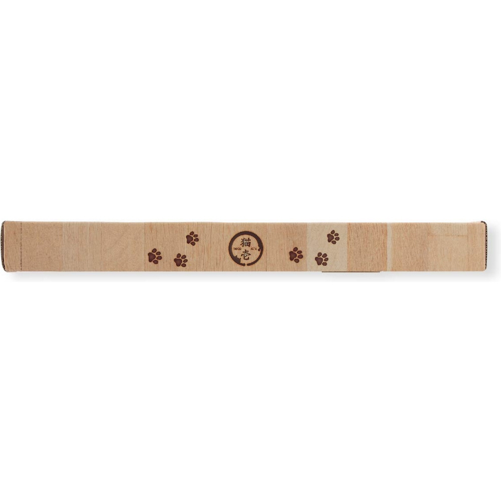 デザインは木目調を貴重とし、インテリアを邪魔しないシンプルなデザインになっています。側面には焼印をイメージした猫のフェイスマーク、そして猫の足跡模様と猫壱ロゴを加え、可愛らしさもプラスしました。