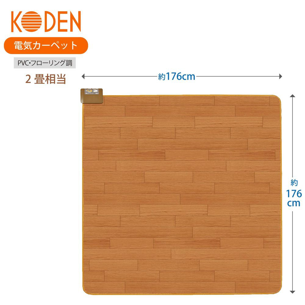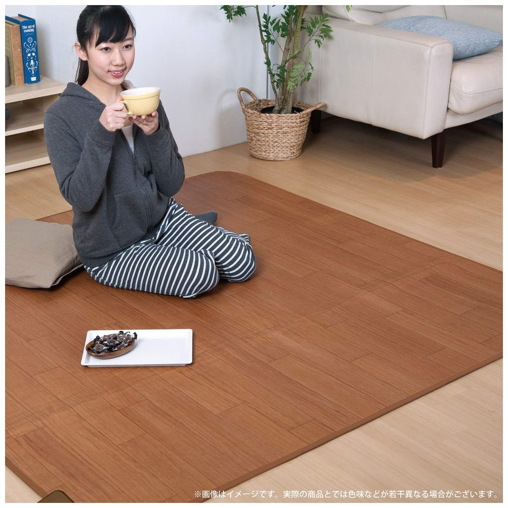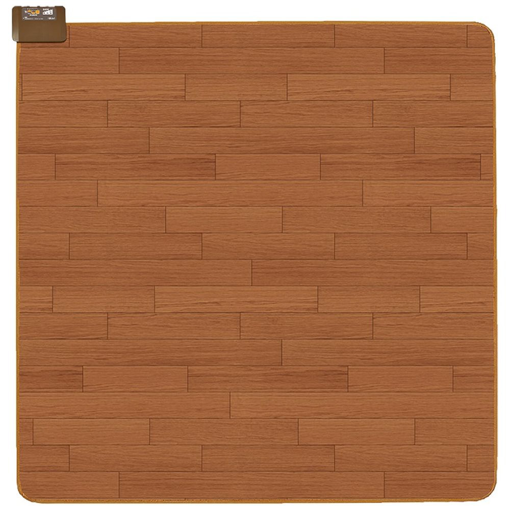 フローリングの床にも馴染むブラウンの木目調柄で、表面防水加工の2畳相当サイズ電気カーペット。