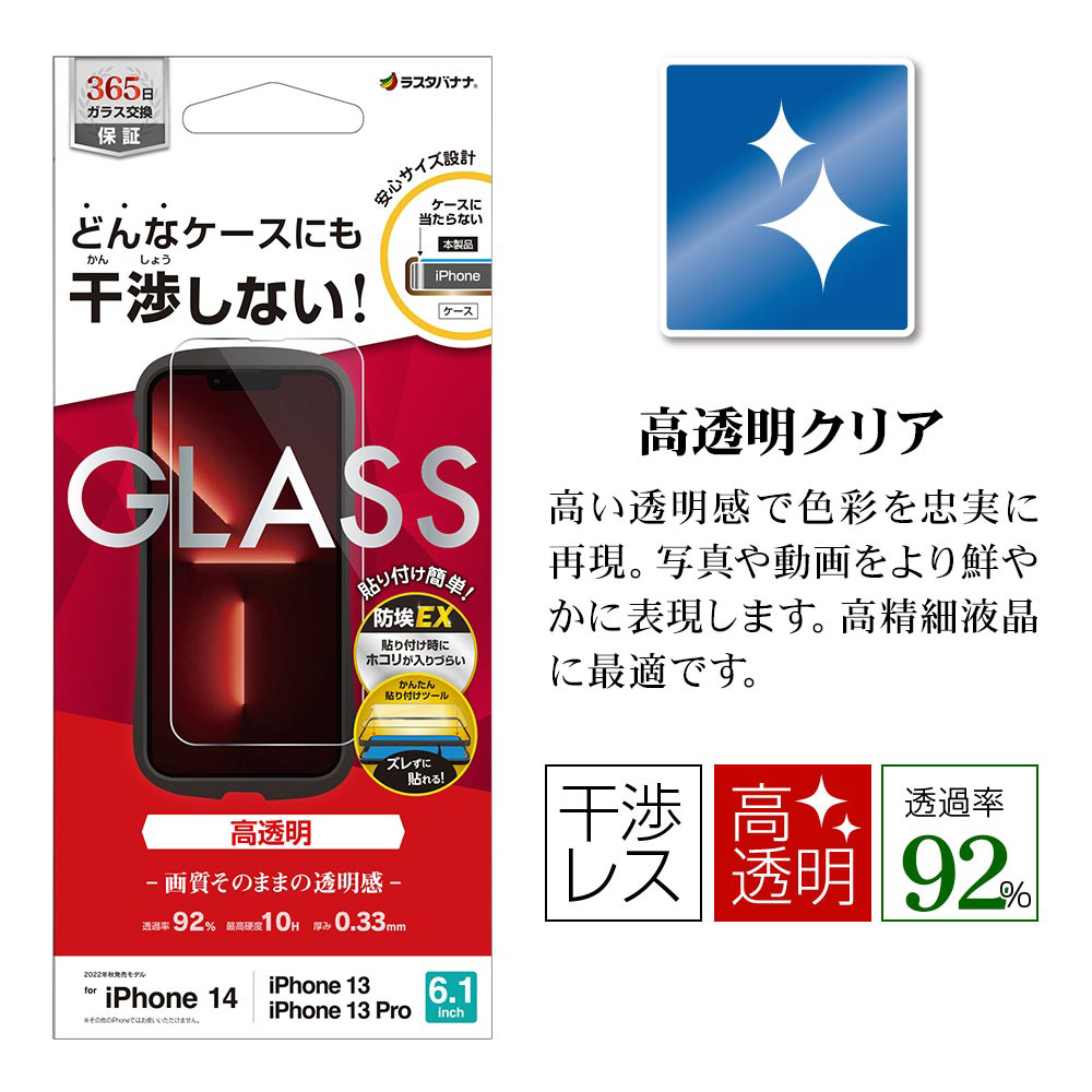 iPhone2022秋 6.1 2眼モデル/iPhone13/13 Pro ガラスフィルム ケースに干渉しない 絶妙設計ガラス 高光沢 帯電防止 クリア ZS3486IP261