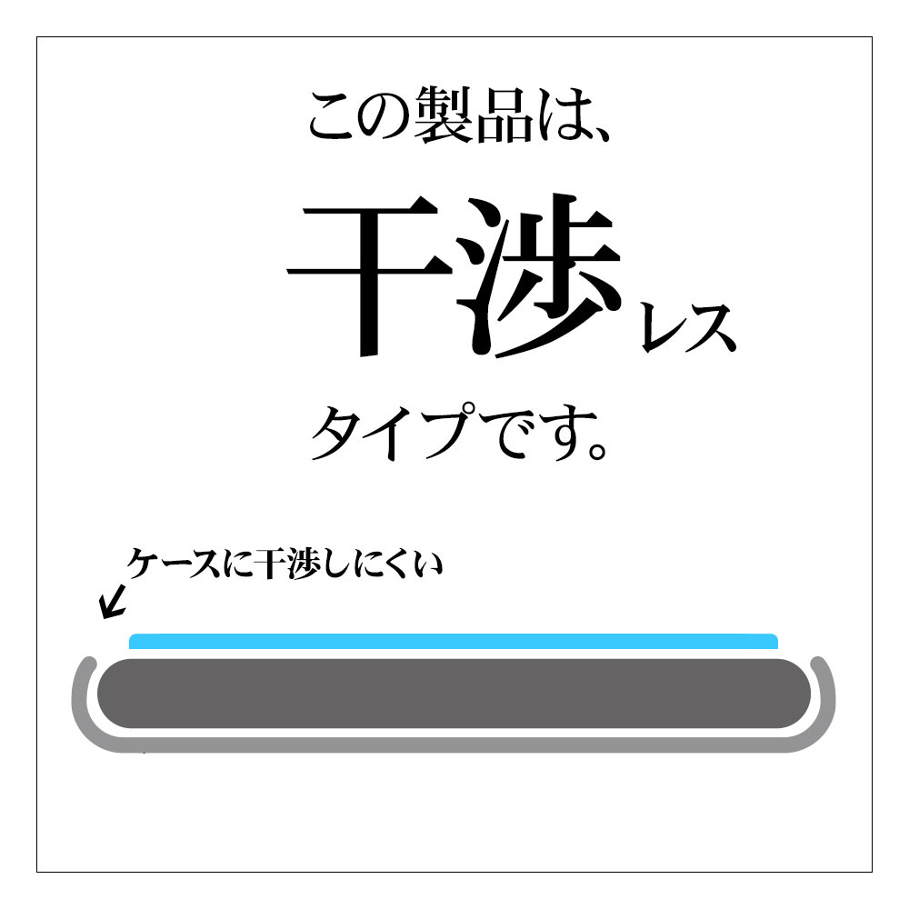 本製品はどんなケースにも干渉しない、安心サイズ設計で作られた保護ガラスです。