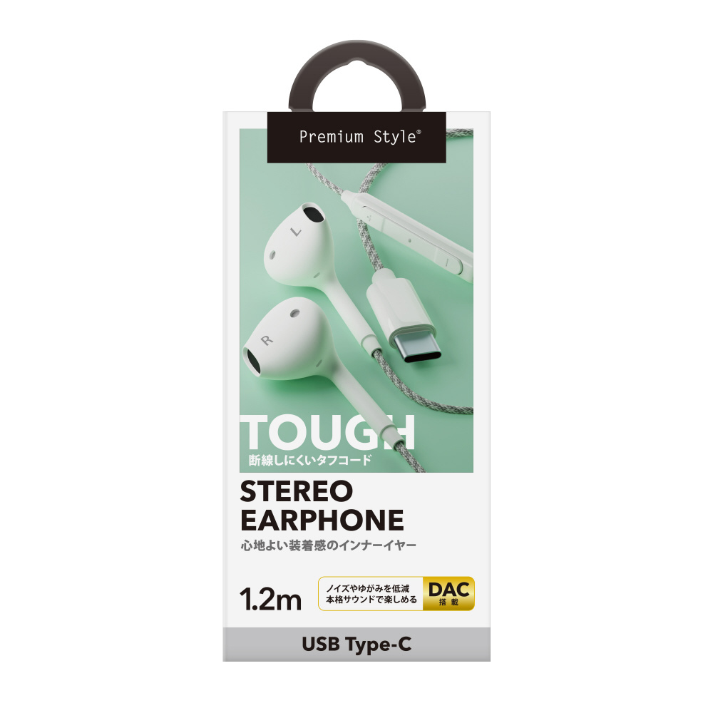 断線しにくいタフケーブルを採用した耳に負担の少ないインナーイヤー型のUSB Type-C ステレオイヤホン
