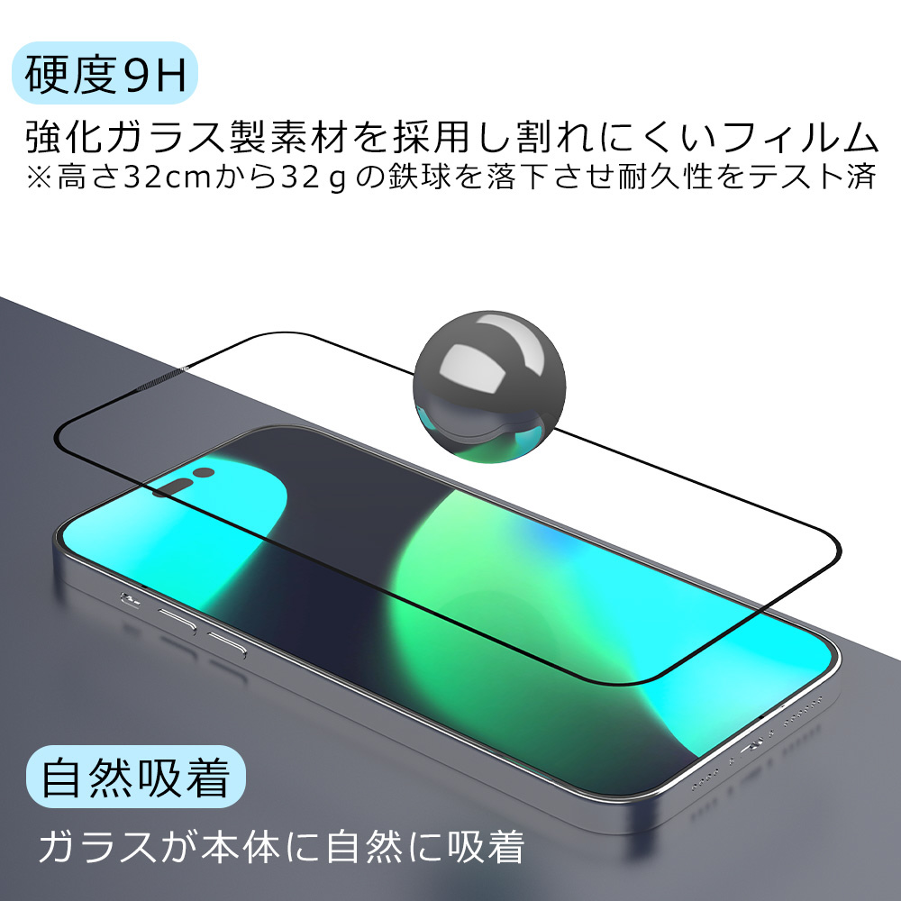 硬度9Hのガラスは本体をしっかりと保護し、高さ32cmから32gの鉄球落下テストや、表面のタッチスムーステストなど様々なテストがされている保護フィルムとなります。