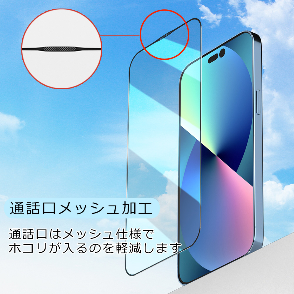 高性能な強化ガラス素材を用いたハイクオリティの保護ガラスフィルムです。硬度9Hのガラスは本体をしっかりと保護し、高さ32cmから32gの鉄球落下テストや、表面のタッチスムーステストなど様々なテストがされている保護フィルムとなります。フルスクリーンで画面全体を保護します。フロントサイド通話スピーカー部分は穴が開いているだけでなく、メッシュのフィルターがされており、埃などの侵入を軽減します。
