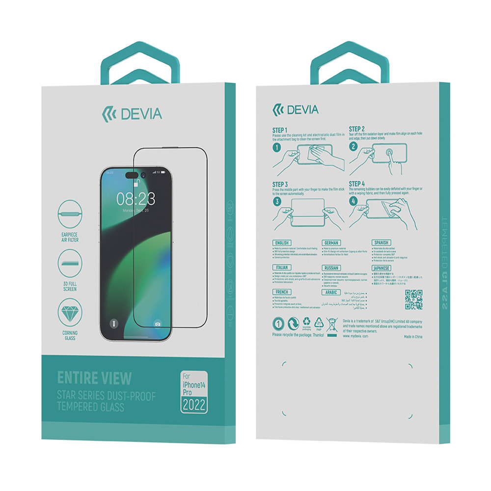 iPhone 2022 6.7 2眼 Star Series Full Screen Entire View Tempered Glass DEVIA black BDVSPA10-IP14L
