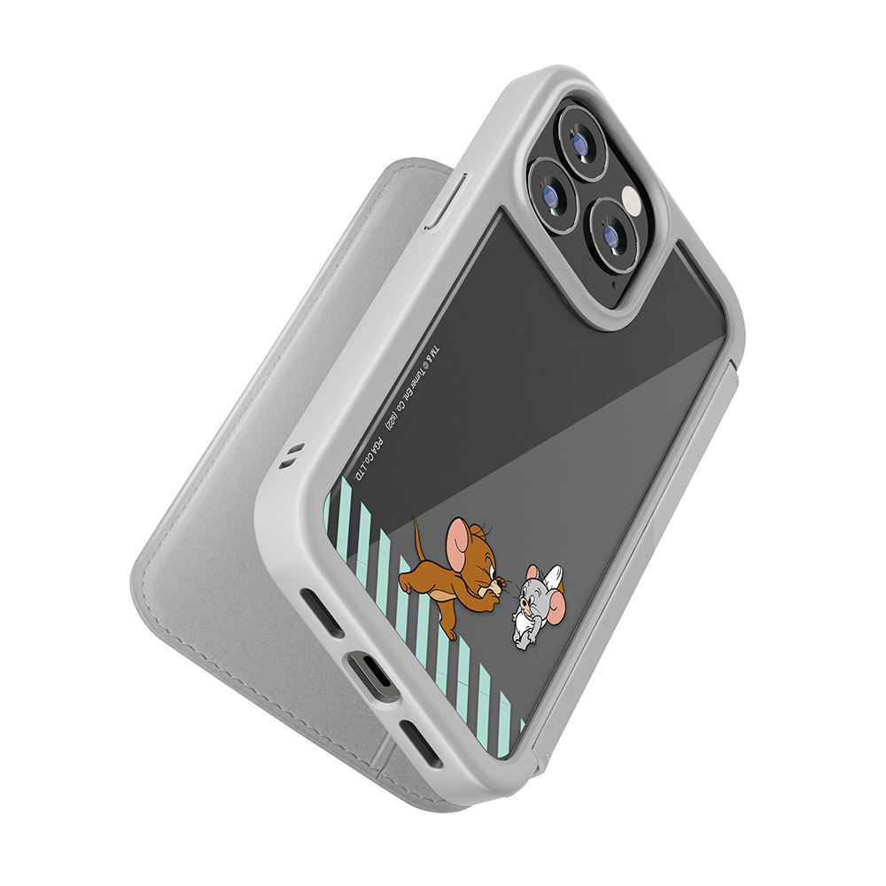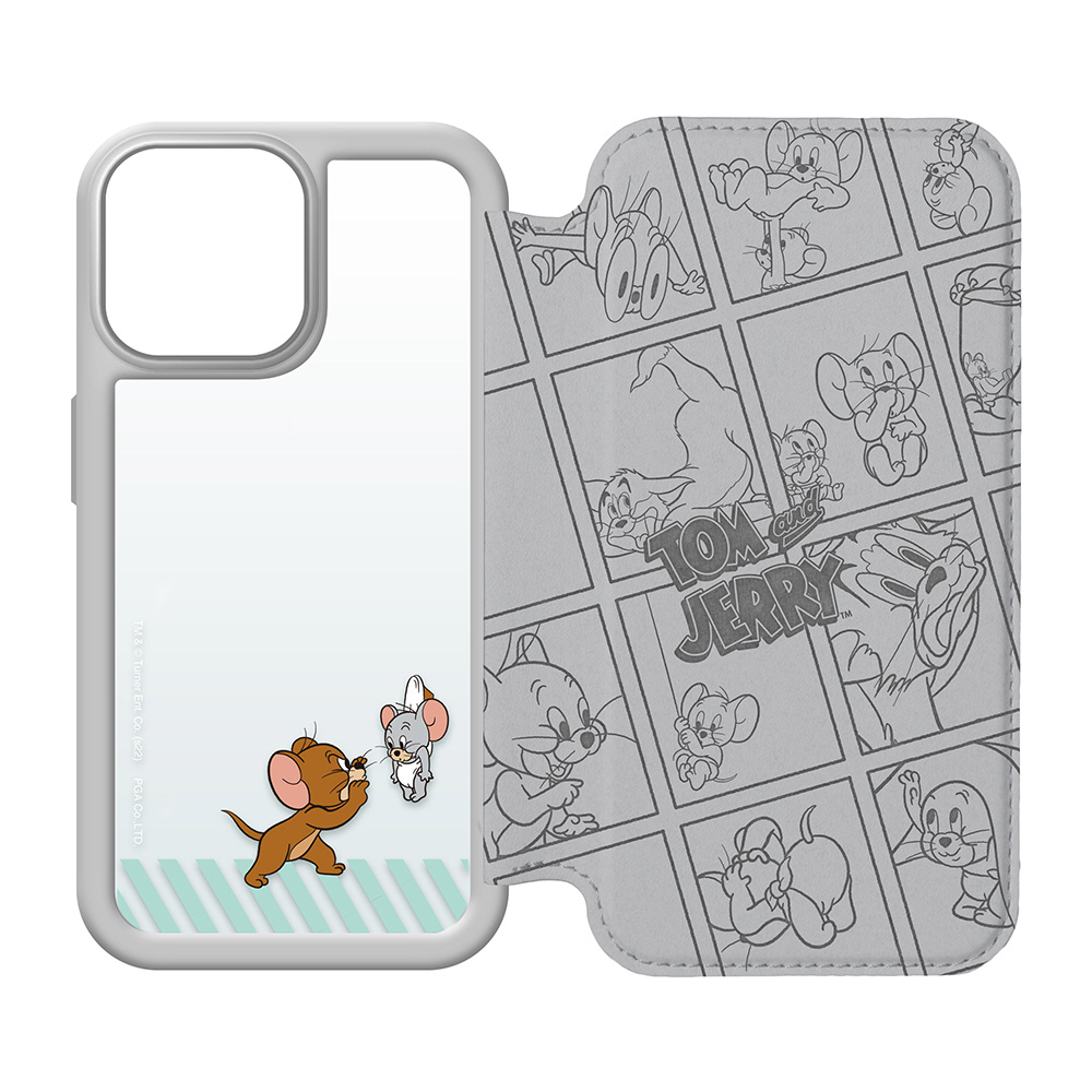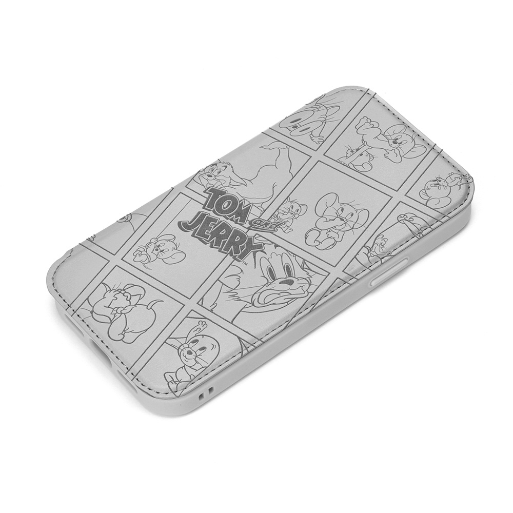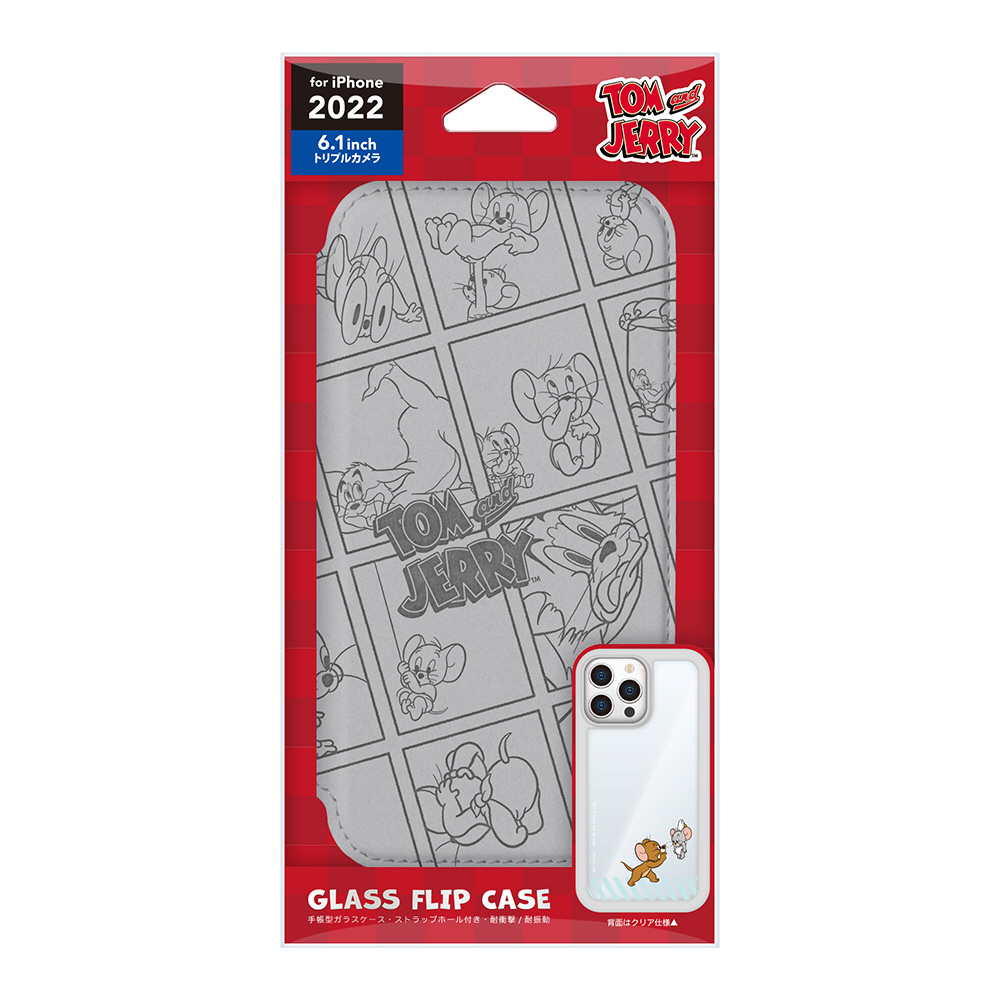 iPhone2022 6.1inch 3眼 ガラスフリップケース トムとジェリー/グレー