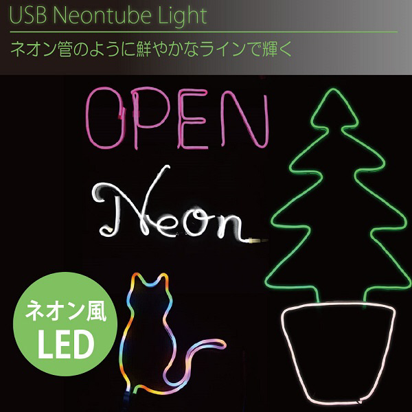 今までなかった!自由自在に曲がって、鮮やかに発光するネオン風LEDライト「USBネオンチューブライト」です。