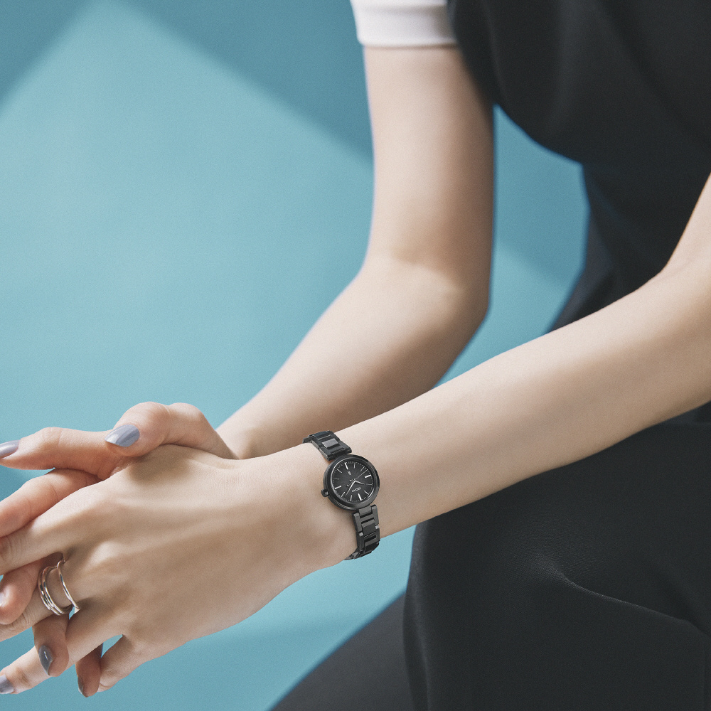 アクセサリー感覚で使える、ケース径23ミリの小ぶりなサイズ感と、機能を絞り込んだシンプルな姿が魅力なモデル。
