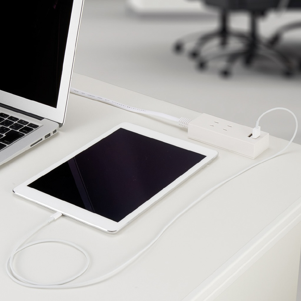 両挿しUSBタップ2個口1m ホワイト H14012UWH [1.0m /2個口 /スイッチ無 /2ポート]