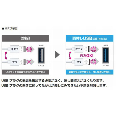 ●USBプラグの裏表を気にせず挿せてストレスフリー。