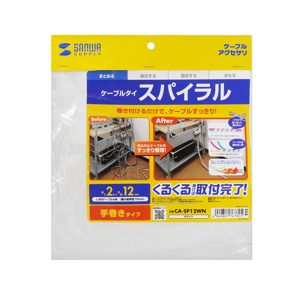 ケーブルタイ [内寸φ12mmx2m] スパイラル ホワイト CA-SP12WN