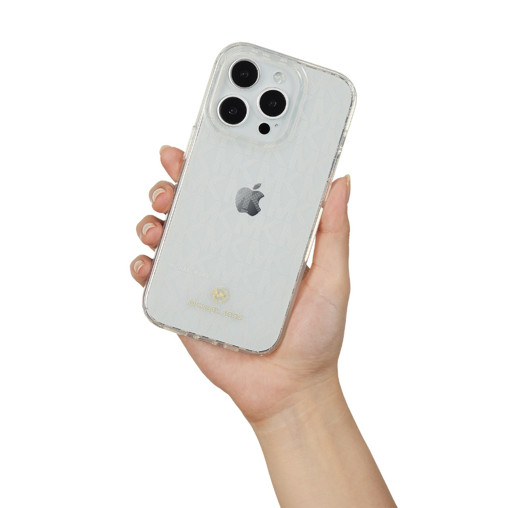 iPhoneのカラーにMichel Korsのシグネチャープリントが美しく映えるクリアケース