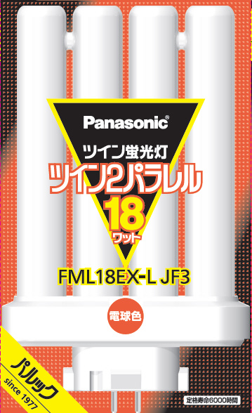 ツイン蛍光灯 ツイン2パラレル(4本平面ブリッジ) 18形 電球色 FML18EXLJF3 [GX10q-3]