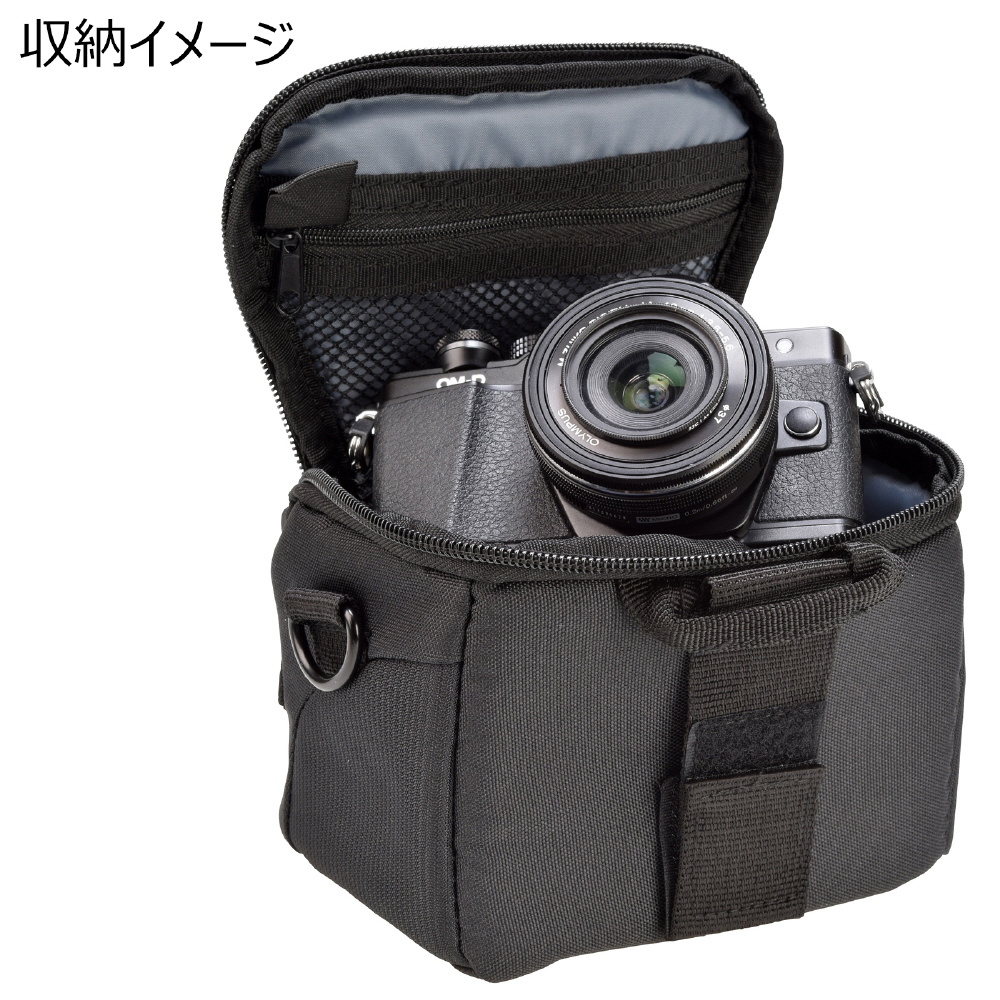 無駄のないシンプルなカメラバッグ。ショルダーバッグとしてだけではなく、インナーケースにしても便利。フタはは大きな間口の前開きなので、掛けたままでのレンズ交換などの作業がスムーズ。小型一眼レフ、ミラーレス、交換レンズ、ビデオカメラなど、1台装備の気軽なお出かけに最適。
