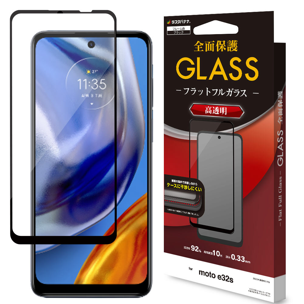 モトローラ moto e32s ガラスフィルム 全面保護 2.5D 高光沢 ブラック FG3651MOTOE32