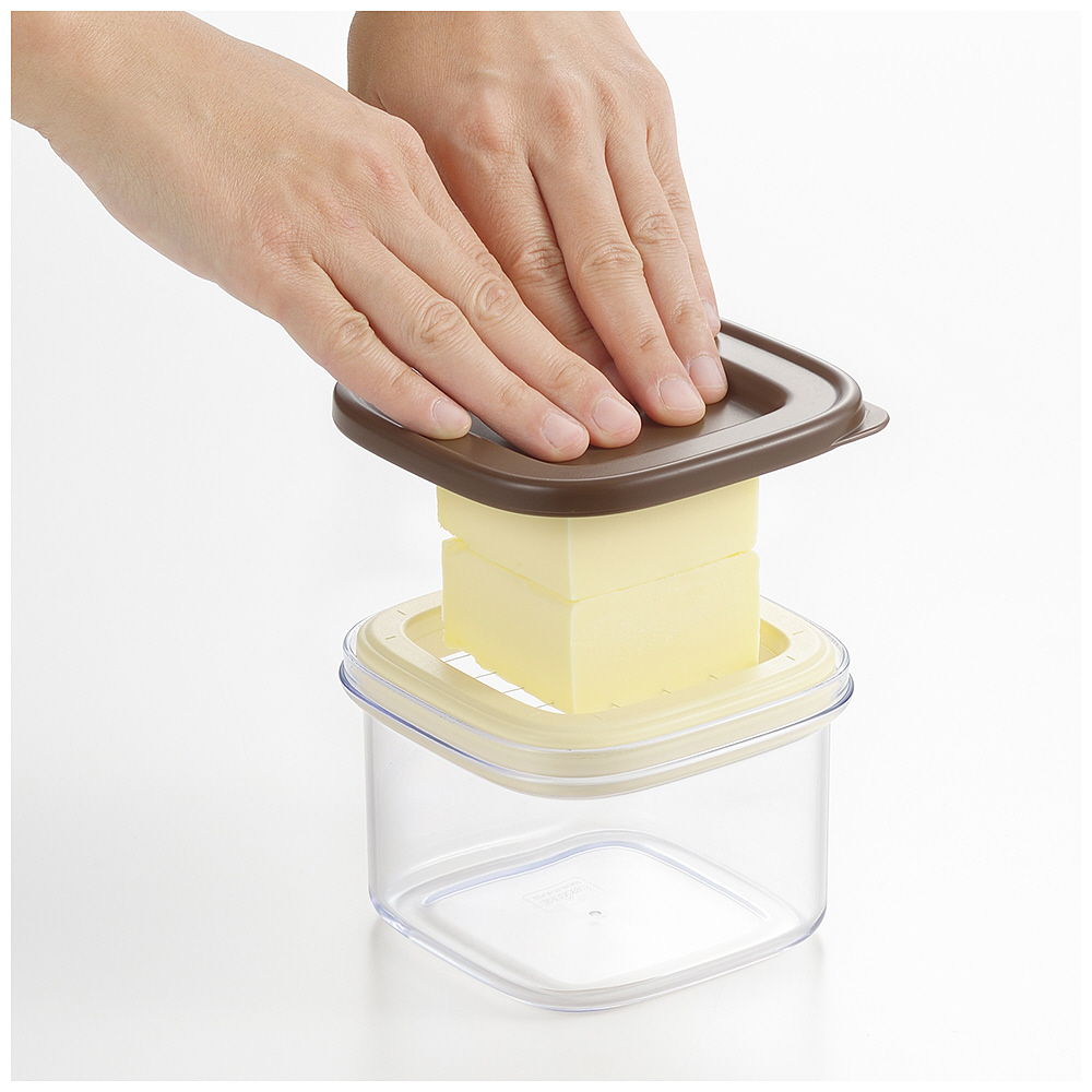 かたまったバターを約5gにカットでき、冷蔵庫保存もOK。