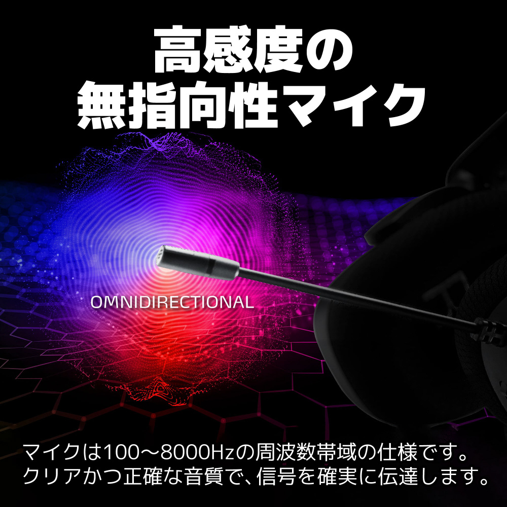 通気性のある生地と自動調整ヘッドバンドを備えた快適なイヤー クッションは、気を散らしたり不快感を与えたりすることなく、長時間のゲーム セッションを提供します。