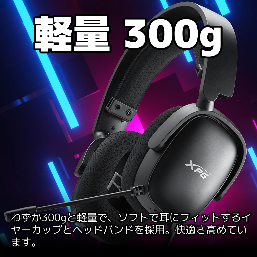 XPG PRECOG S の重量はわずか 300g で、ソフトで順応性に優れたイヤーカップとヘッドバンドが最高の快適さを提供します。