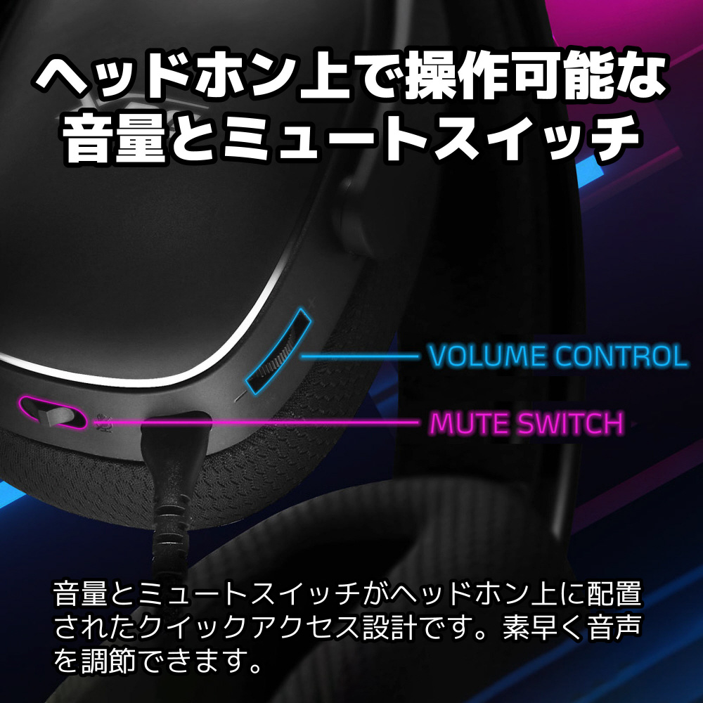 クイックアクセス設計により、音量コントロールとミュート スイッチが便利な場所に配置されているため、ゲーマーはオーディオをすばやく調整してゲームに戻ることができます。