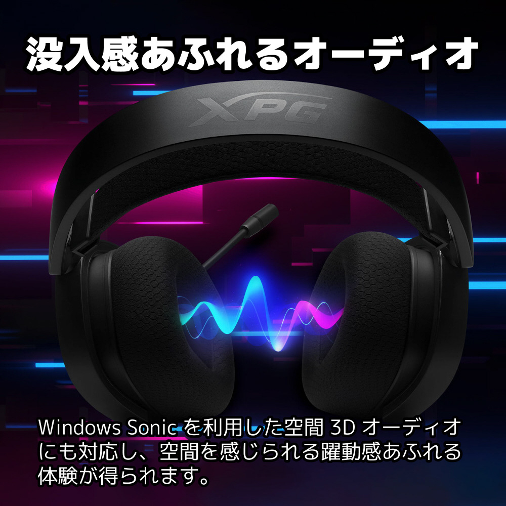 Windows Sonic による空間 3D オーディオのサポート、XPG PRECOG S は、互換性のあるプラットフォーム上のすべての人に、空間を意識したサウンド体験を迅速かつ簡単に作成できます。