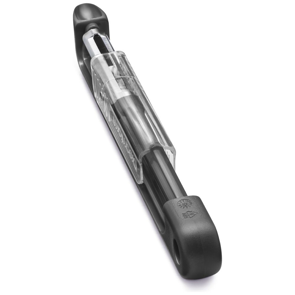 シャープナー機能付きの、コンパクトな縦型ピーラー。