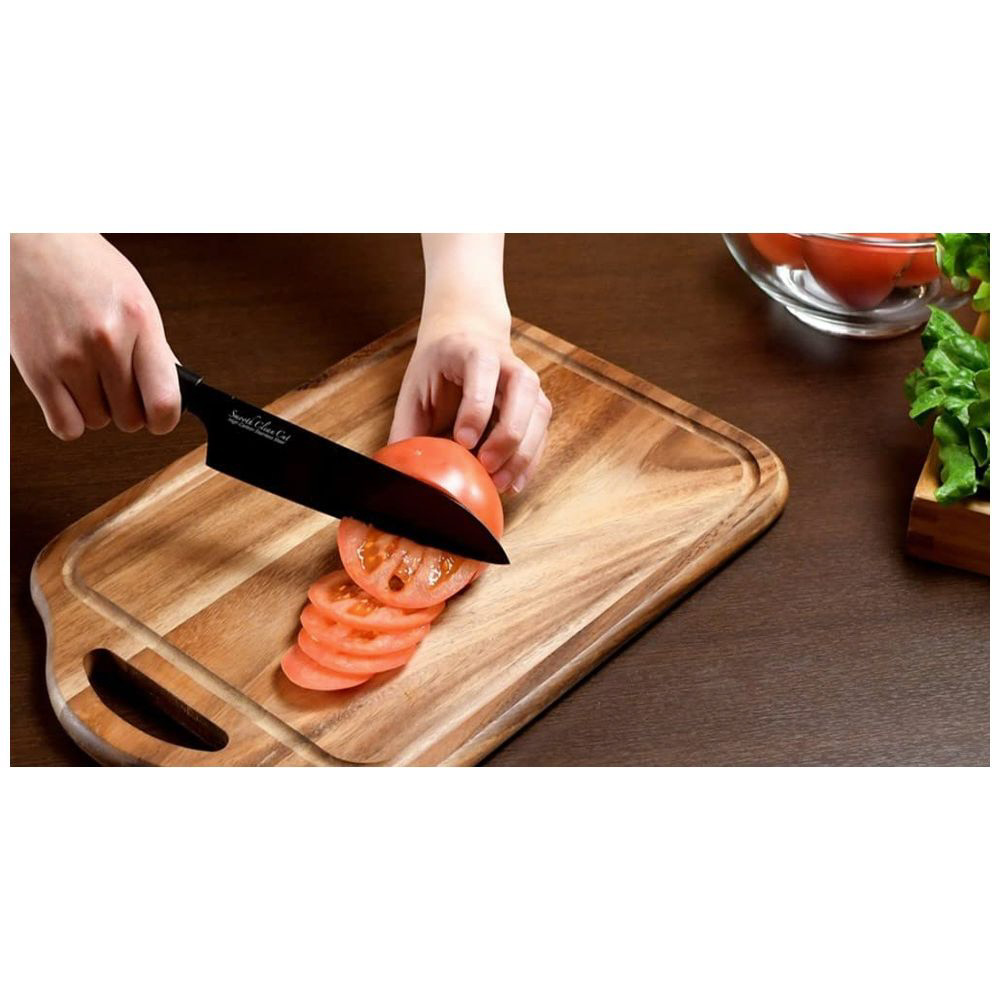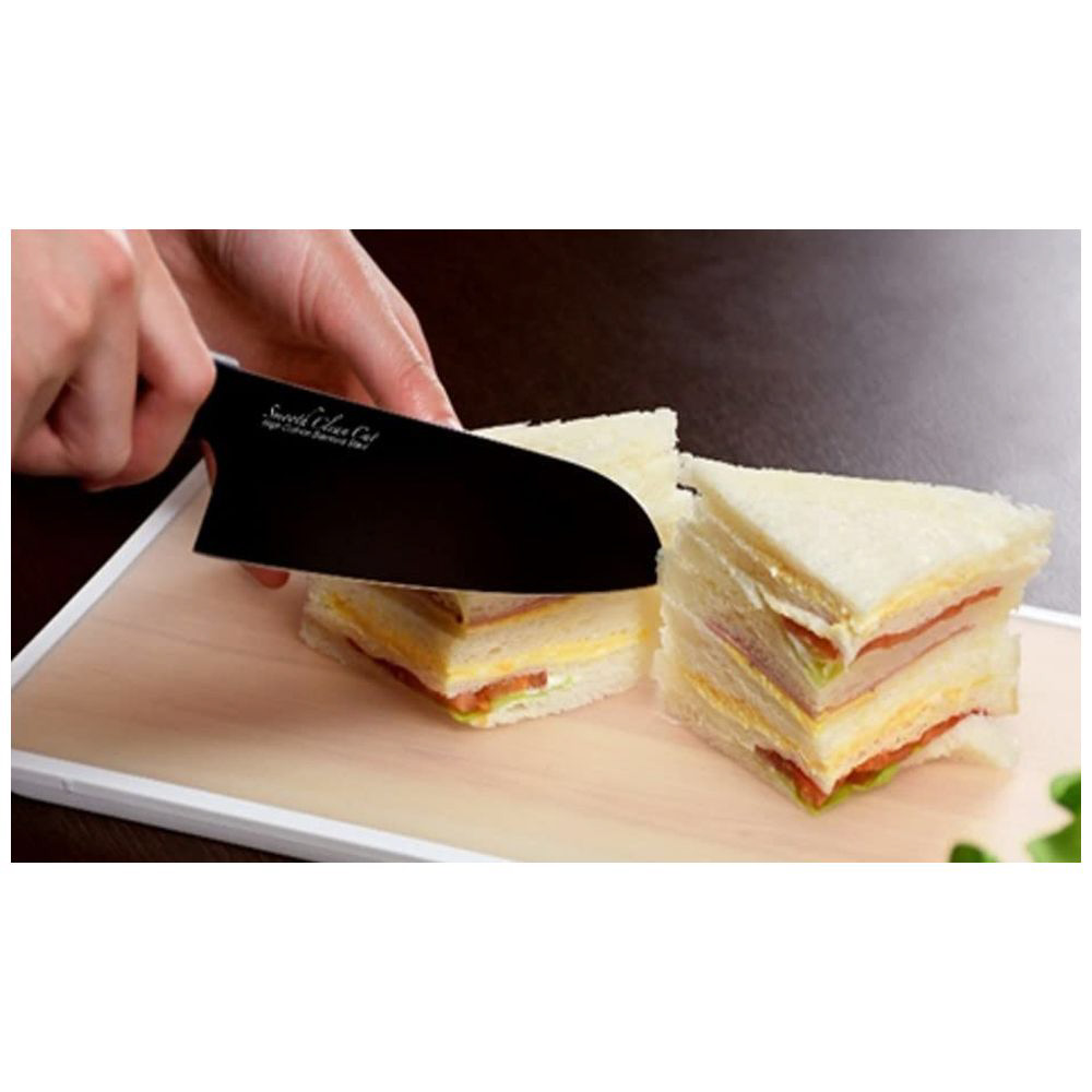 ふっ素樹脂加工で洗いが簡単!スムースクリーンカットシリーズ。表面にクリーンカットのふっ素樹脂加工を施しているので、スムースに切れて、汚れがつきにくい包丁です。