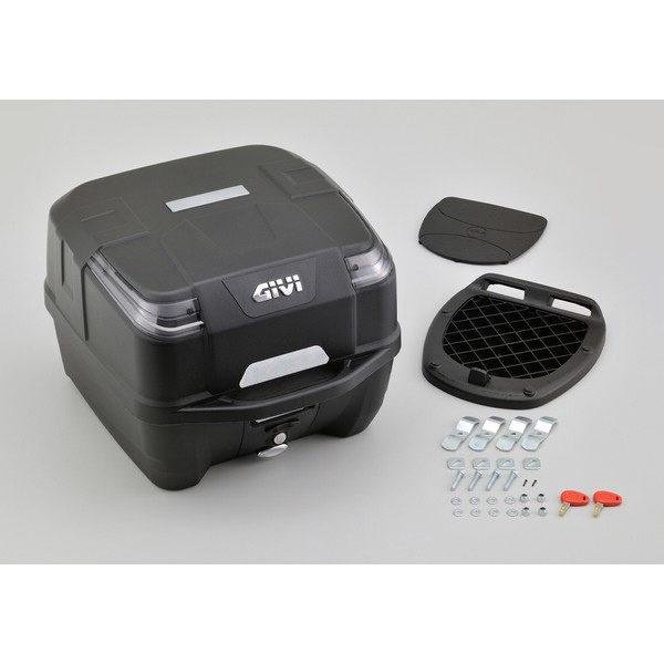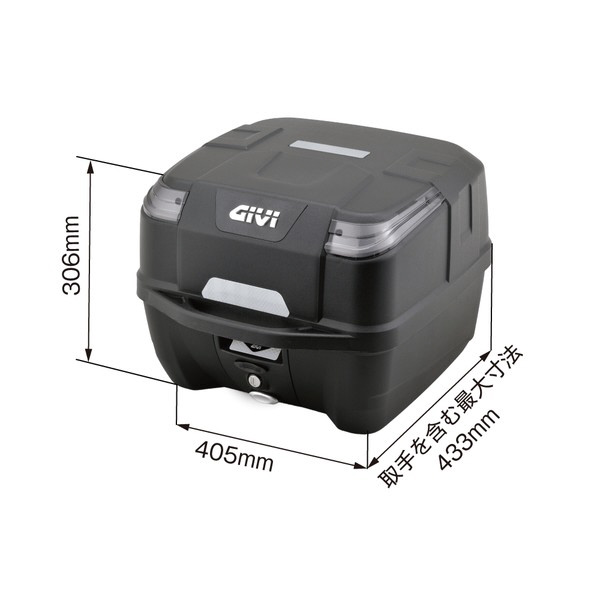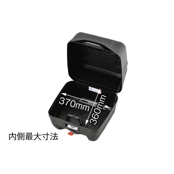 コンパクトながらフルフェイスヘルメット1個やA4サイズのビジネスバッグがすっぽり入るサイズです。