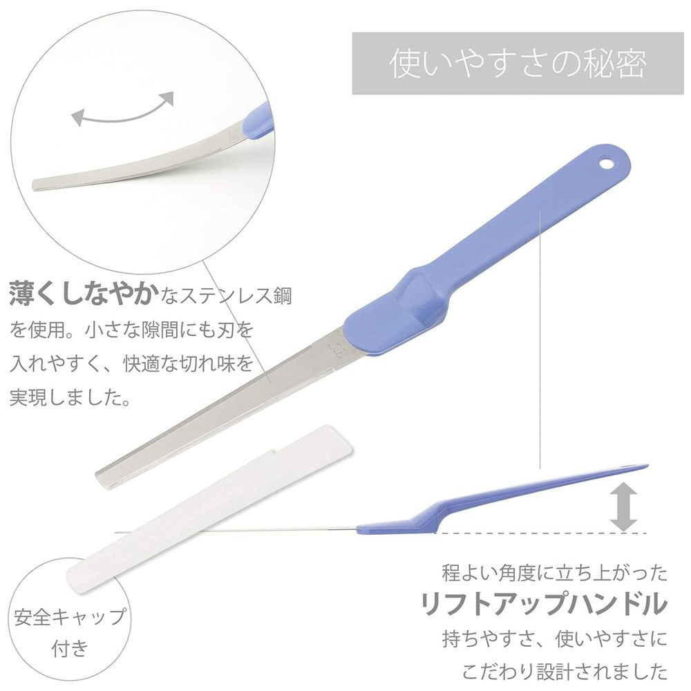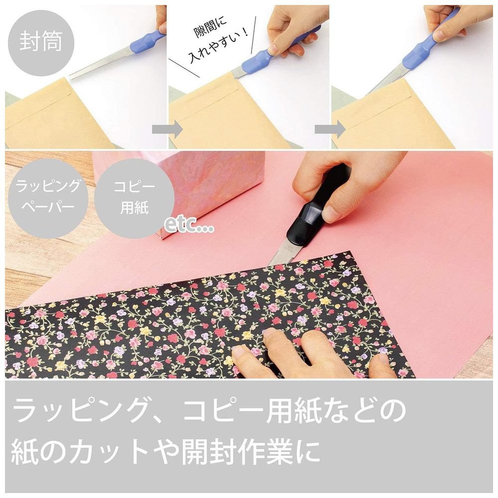 刃体の厚みが0.5mmの薄刃のため封筒などが軽い力でスパッと切れます。