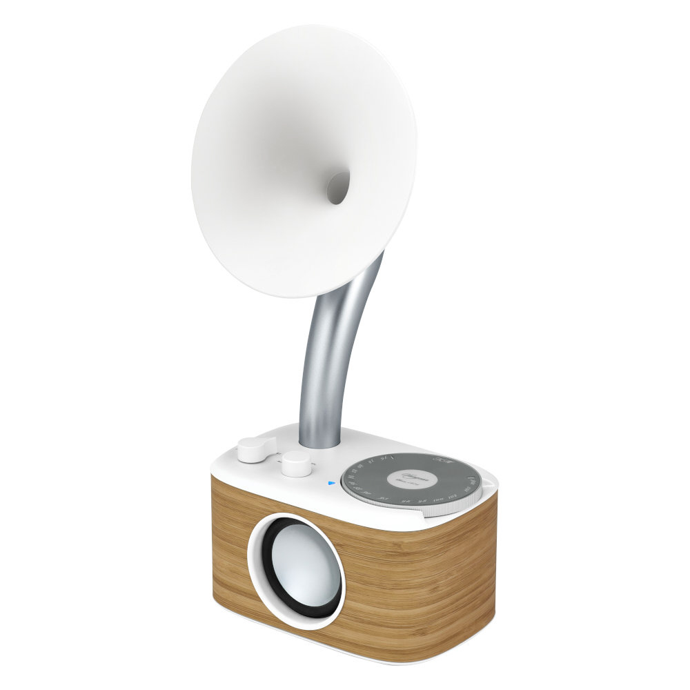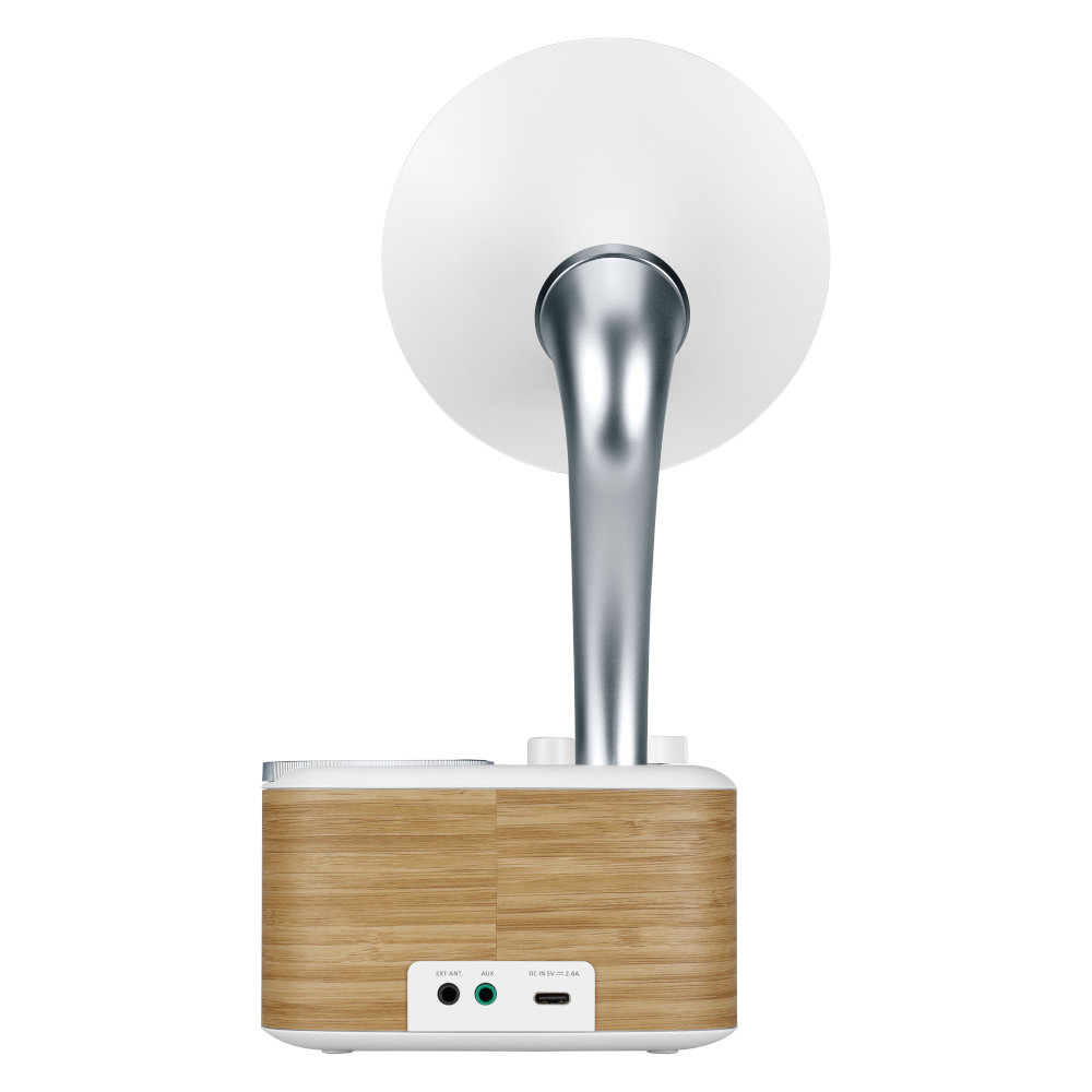 WR-303の音響調整されたキャビネットが、蓄音機を彷彿とさせるバスポートから溢れる豊かな低域のレスポンス、正面のスピーカーから奏でられるなめらかな中高音域とが一体となり、自然で聞きやすいサウンドを実現します。