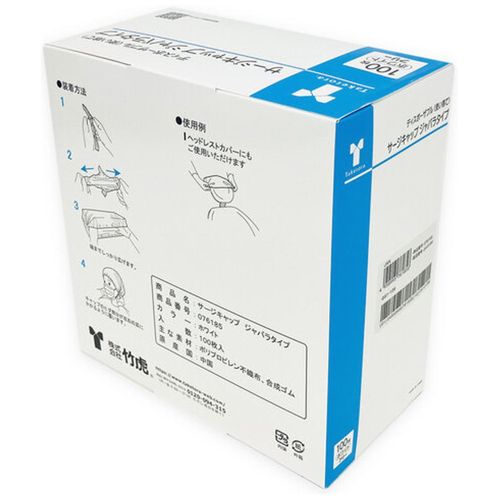 竹虎 サージキャップ ジャバラタイプ ホワイト 100枚入 076185