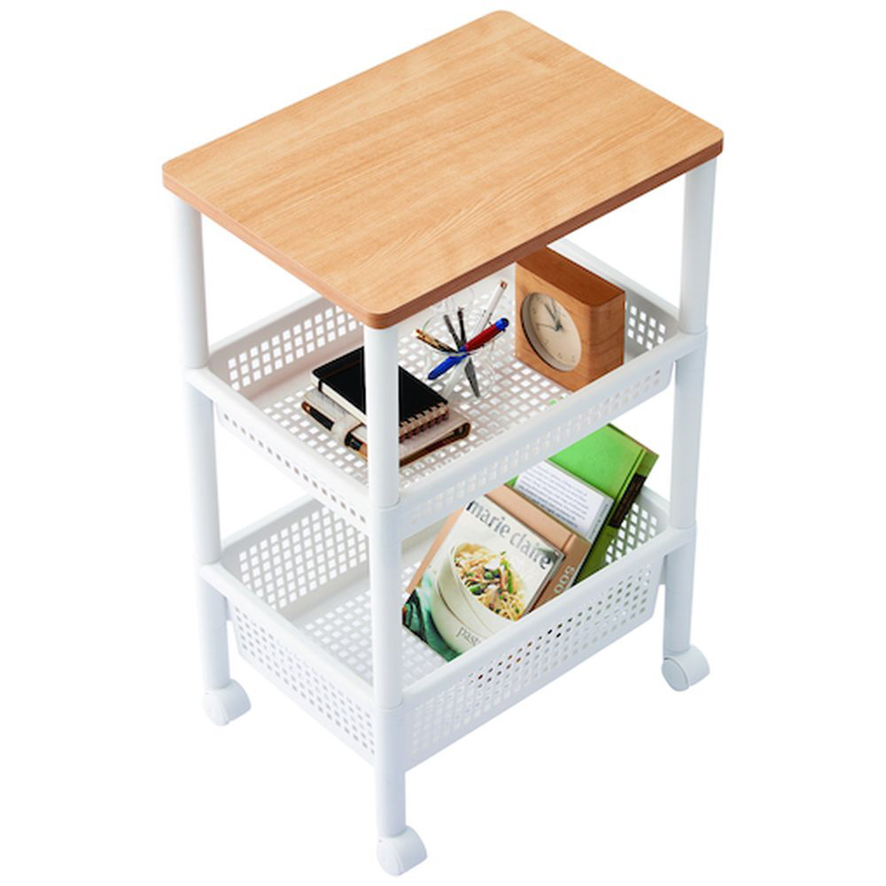 ウッドトップワゴン ※ワイド3段(約 W33×D45×H70.5cm) 天馬(TENMA) 【天板】ナチュラル×【本体】ホワイト 811000864