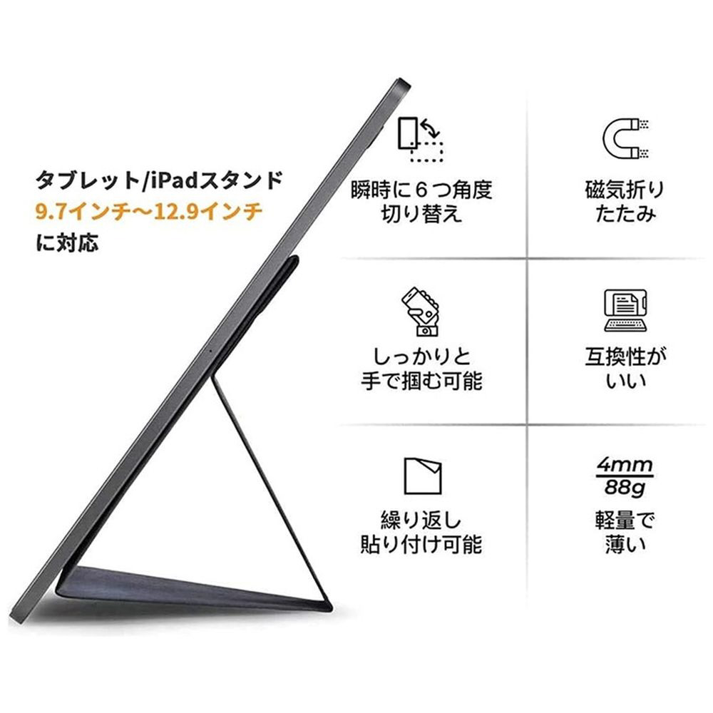 Apple、Samsung、Microsoft、Lenovo等の9.7〜13インチのタブレットに対応するスタンドです。