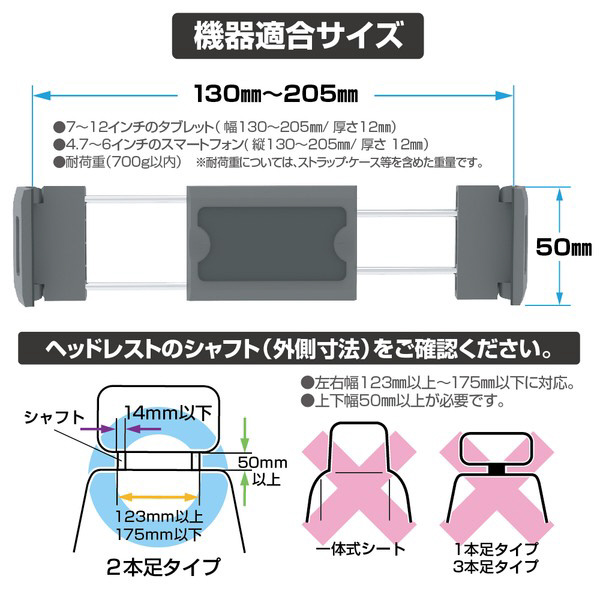 ●ヘッドレストシャフト取付け専用のタブレットホルダーです。