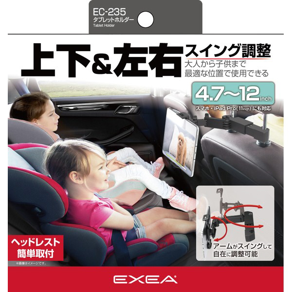 車内用品 EXEA(エクセア) タブレットホルダー(リア用) ヘッドレスト取り付け カラー:ブラック 収納サイズ:幅130〜205mm 厚さ12mm以下 重さ700gまで EC235