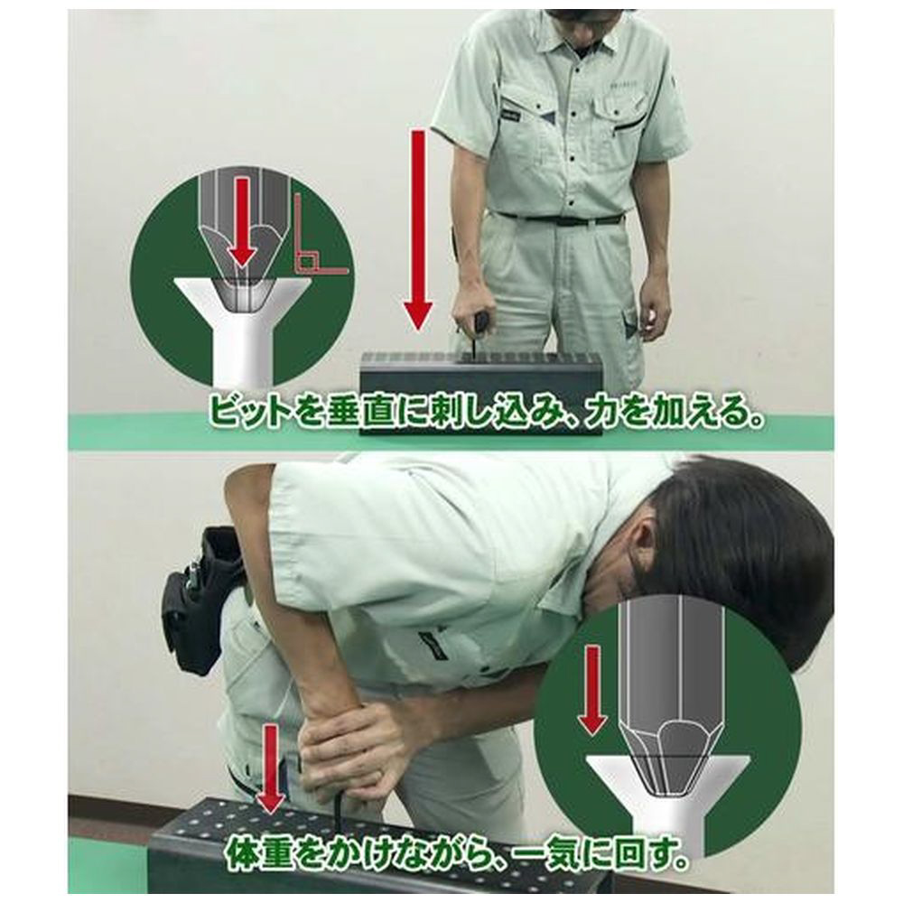 ■ビットを付け替えることで、さまざまな形状、潰れ具合のネジに対応できます。