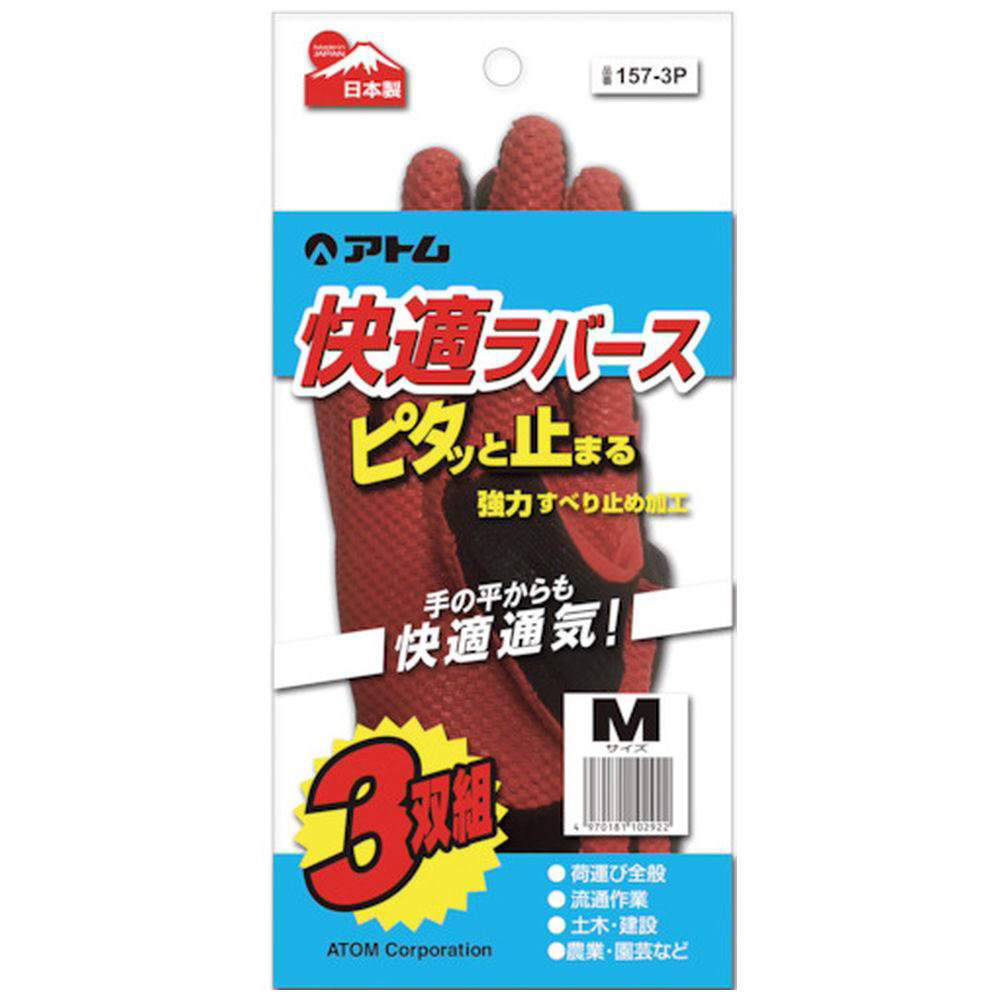 アトム ゴム張り手袋 快適ラバース 3双組 M 157-3P-M