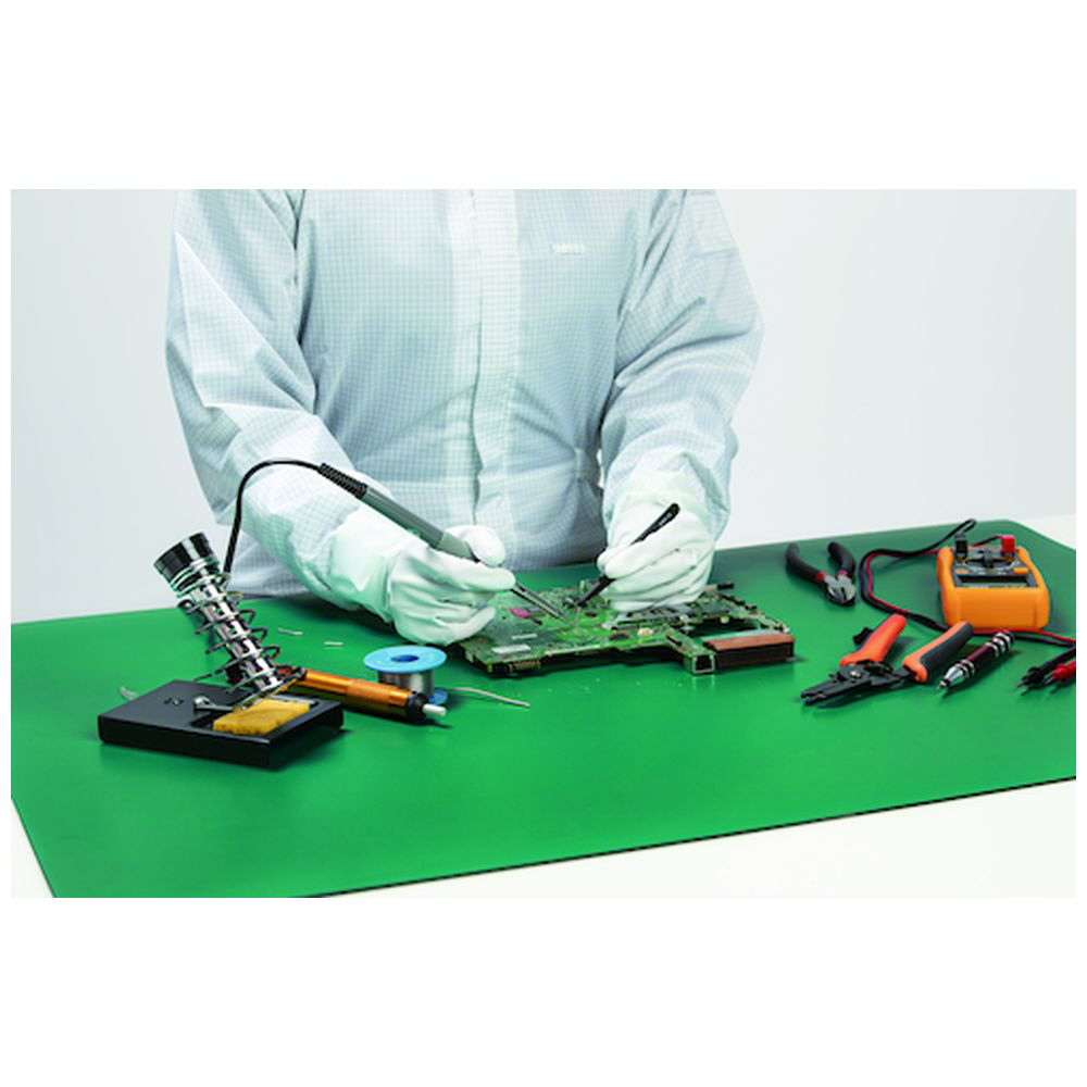 【仕様】●色:グリーン●幅(mm):1200●長さ(mm):600●長さ(m):6●厚さ(mm):3●表面抵抗値(Ω):6.5×10の7乗