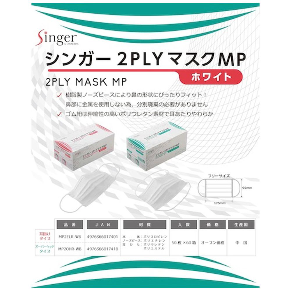 シンガー シンガー2PLYマスク MP(50枚入) 頭掛け MP2OHR-WB