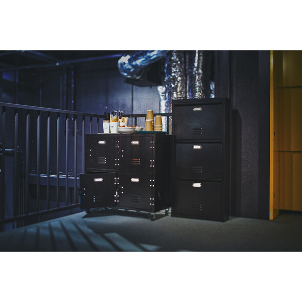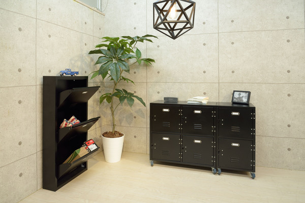 ロッカーのような印象がインテリア好きにはたまらない、ハンマートーン仕上げのメタルシューズラック。