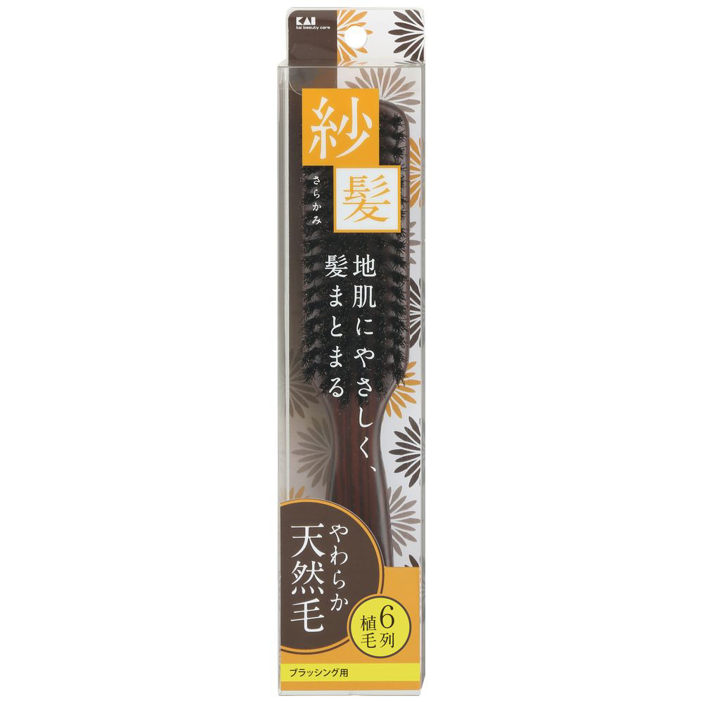 地肌にやさしい天然毛を使用したブラシ。6列植毛のブラッシングブラシ。Lサイズ。