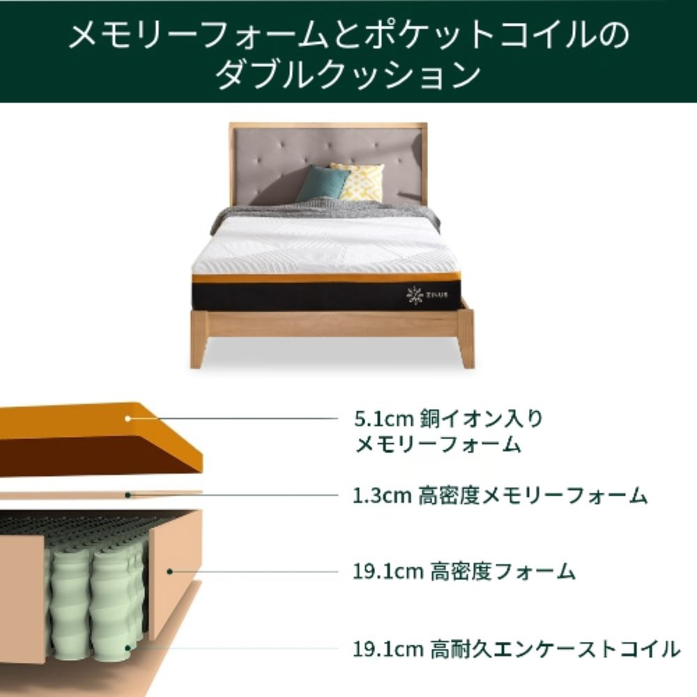 【マットレス】ジヌス Adaptive 低反発+ポケットコイルハイブリッドマットレス エッジサポート 25cm ZINUS ジヌス ZJ-MSHPHB-10D [ダブルサイズ]