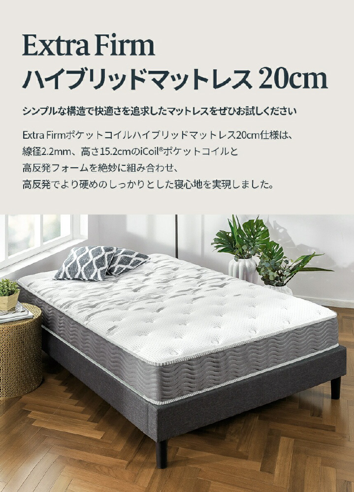 【こちらの商品はマットレスのみでの販売となります。フレームは別売りとなります】◆しっかりとした硬さのマットレス【Extra Firm】シリーズ・厚さ20cm仕様。高反発でより硬めのしっかりとした寝心地を実現しました。セミダブルサイズになります。