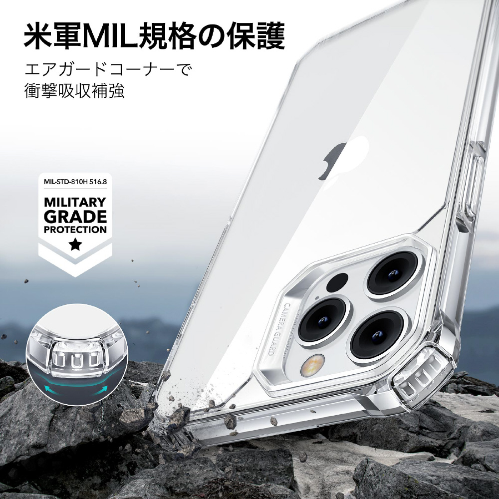 iPhone 14 Pro 対応Air Armorクリアケース 米軍MIL規格の落下保護、iPhone の本来のスタイルをアピール、エアガードコーナー付き保護ケース